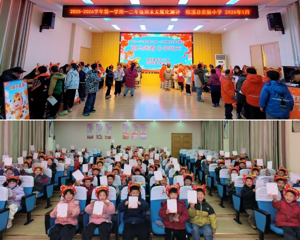 为落实“双减”政策,创新评价方式,1月22日至23日,绩溪县实验小学一二年级开展了“萌马闹春 乐学闯关”期末无纸化测评活动。本次活动以游戏化、情境化的趣味闯关形式,替代传统纸笔测试,让孩子们在欢乐中完成知识与能力的综合检验。