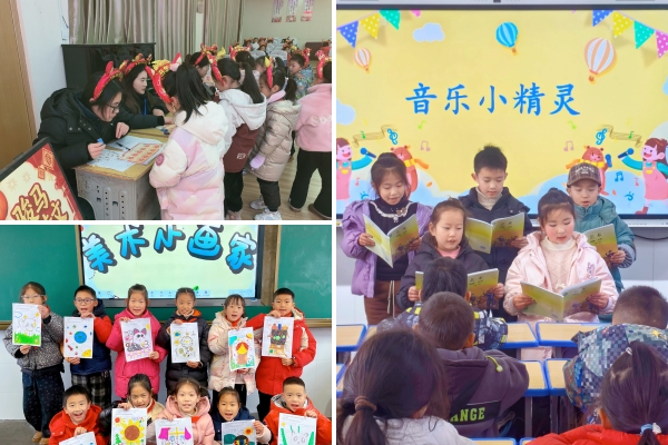 活动现场年味十足,红灯笼、萌马玩偶与闯关印章相映成趣。孩子们手持闯关卡,兴高采烈地穿梭于语文、数学、艺术等各个闯关区域。在轻松愉悦的氛围里,他们时而专注认读,时而开动脑筋计算,时而放声表达,时而沉浸在音乐与绘画的创作中,每一张小脸上都洋溢着自信与喜悦。