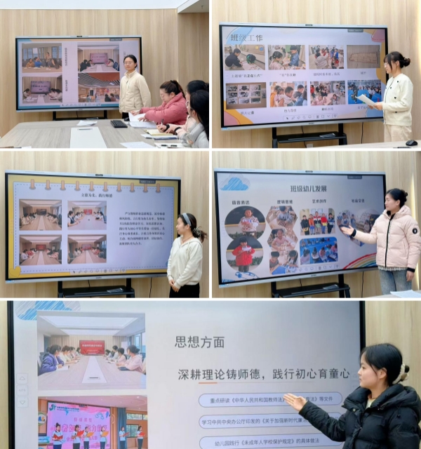 本次总结中,全体教师紧扣政治思想、学习提升、班级工作、反思与展望四大核心维度,立足自身岗位与班级教学实际,细致梳理一学期的耕耘点滴。老师们不仅分享了在政治理论学习、师德师风建设中的收获与感悟,更结合具体案例,呈现了在班级日常保教、幼儿习惯培养、课程实施、家园共育等工作中的亮点与成效。同时积极回顾参与园所及各级各类学习、活动、比赛中的成长历程,畅谈专业能力提升心得,并坦诚剖析工作中的不足,明确后续改进方向。从小班的生活自理能力培养到中大班的探究能力提升,从集体教学优化到区域活动创设,每位教师的分享都兼具实践深度与思考温度,展现了潜心育人、笃学精进的良好风貌。
