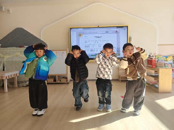 孩子们跟着《毛毛虫模仿操》的节奏扭腰、抬腿、跳跃,在欢快的动作中感受毛毛虫成长的乐趣,既活动了身体,又加深了对角色的体验。