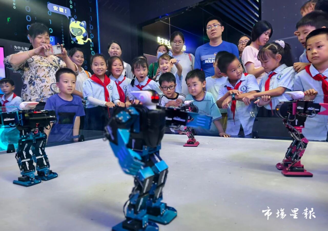 (2025年7月19日,安徽省合肥市的安徽省科学技术馆内,学生正在开展科技研学。 何玉/摄)