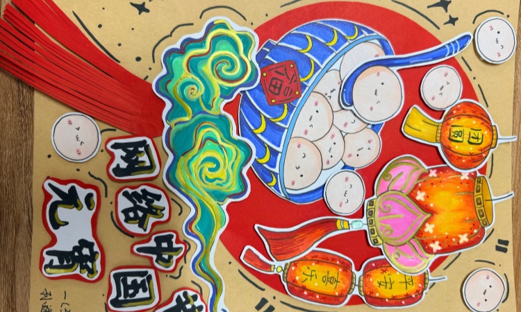 一年级的小朋友们化身小画家,以“巧手绘团圆”为主题,用五彩斑斓的彩笔、彩纸,勾勒出心中最热闹的元宵图景。圆圆的汤圆、璀璨的花灯、欢闹的人群、喜庆的灯笼……孩子们发挥无限想象力,将对元宵佳节的喜爱与期待,一笔一画融入作品之中。一幅幅充满童真的作品,汇聚成一幅喜庆的元宵画卷。