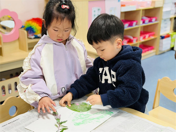 各年级组特色活动精彩纷呈,亮点十足。小班幼儿以趣味初识,感官体验为核心,开启了清明文化启蒙之旅。孩子们跟着老师走进自然收集树叶、花朵,开展创意拓印活动,指尖轻触自然纹理,一幅幅色彩斑斓的“清明春色图”跃然纸上。