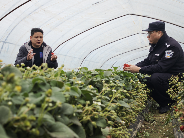 随着草莓种植季的到来,辖区内的草莓大棚内生机盎然。为进一步密切警民关系,切实保障农户利益,近日,撮镇派出所组织民警深入田间地头,走进草莓大棚开展安全宣传活动,将平安送到农户心坎上。