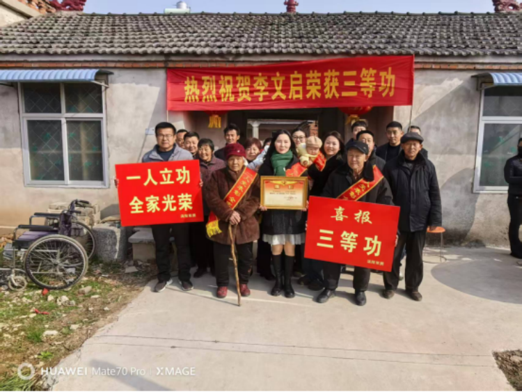 为进一步弘扬新时代拥军优属光荣传统,增强军人军属的荣誉感和自豪感,3月10 日上午,涡阳县高炉镇新时代文明实践所、镇军服办、镇妇联联合为荣立“三等功”的现役军人家庭送喜报,与军属共享荣耀时刻。