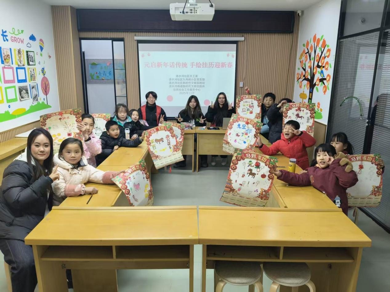 岁末迎新,为丰富青少年精神文化生活、营造和谐温馨的邻里氛围,六安市金安区清水河街道清水河社区新时代文明实践站联合社区关工委、九州府小区党支部开展系列文明实践活动,通过手绘挂历、手工制作与文化讲解相结合的形式,使孩子们体验传统民俗,以饱满的热情迎接新年的到来。