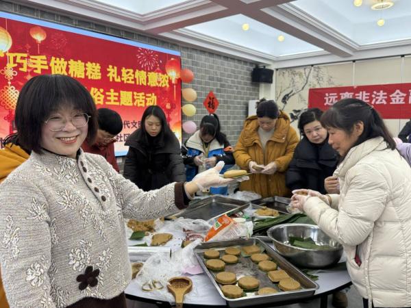 2月5日下午,黄山市黄山区平东社区联合区委社工部、区委统战部、区新时代文明实践中心、甘棠镇文明实践所、披云酒店党支部及太平农商银行,在徽街太平宴共同举办“巧手做糖糕 礼轻情意浓”移风易俗主题活动。活动吸引黄山好人、新就业群体、侨胞、特殊群体、社工、志愿者等40余人参加,通过“专业社工+志愿服务”的社志融合模式,倡导文明婚俗,弘扬优良家风,为社区居民送上特别的新年祝福。