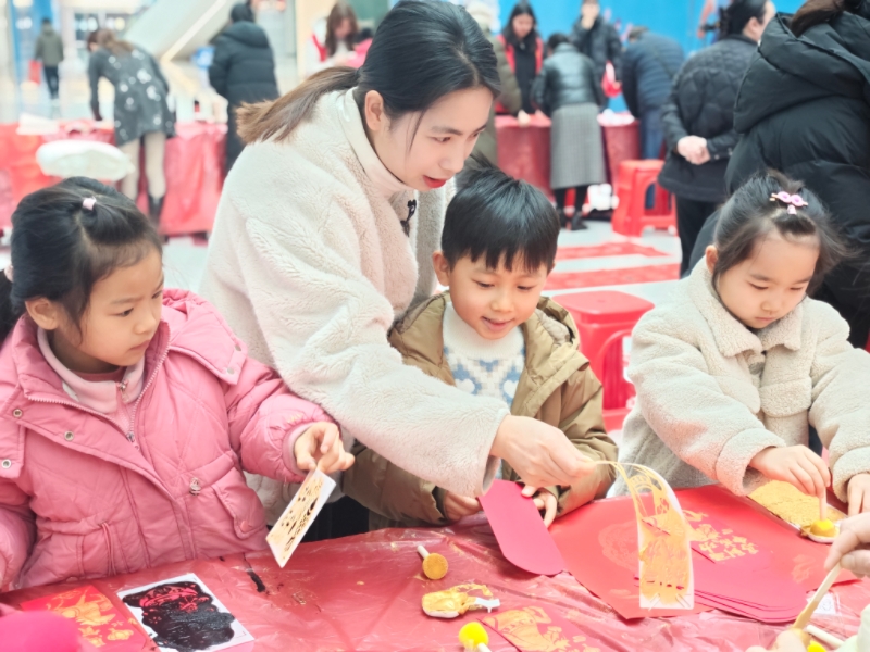 活动现场准备了红纸、毛笔、墨汁等,墨香四溢、暖意融融。活动邀请书法志愿者挥毫泼墨、将对新春的期盼与美好祝愿融入笔墨中。一幅幅寓意吉祥的春联跃然纸上。红色的春联满是新春的喜庆和文化底蕴。春联不仅承载着美好的新春祝福,更拉近了邻里之间的距离。春联,承载着传统民俗的韵味;“福”字,传递着邻里守望的温情。同时,志愿者还准备了手工拓印工具,耐心细致地讲解拓印的流程和注意事项。青少年将拓版轻轻按压在红纸上,再用拓包均匀拍打,生肖拓印逐渐显现轮廓。活动助力青少年在快乐中学习,在传承中成长。居民纷纷表示:“这样的活动很有意义,不仅给我们带来了新春的祝福,还让我们感受到了优秀传统文化的魅力。”