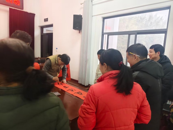 2月5日下午,黟县无党派人士学习联络组联合县委统战部、县书法家协会,组成文化惠民小组,在县政协副主席、学习联络组组长吴元钿的带领下,深入洪星乡大星村开展“送福送春联”活动。此次活动旨在将新春祝福与文化服务送至偏远山村,丰富群众精神文化生活,营造喜庆祥和的节日氛围。据统计,活动当天现场共书写并赠送春联、“福”字200余副,并为行动不便的村民提前备好80余幅春联上门送达。