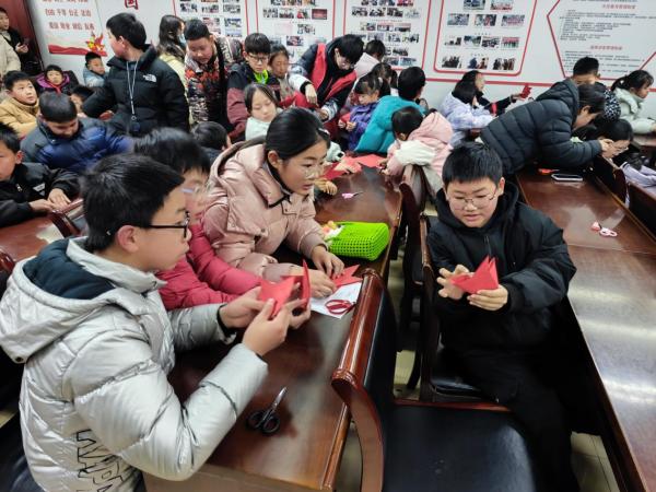 安全知识入脑入心后,非遗剪纸体验环节正式拉开帷幕。来自高校的大学生志愿者化身“非遗导师”,为孩子们讲解剪纸技法与吉祥寓意,手把手指导大家进行剪纸创作。孩子们手持红纸、紧握剪刀,在志愿者的帮助下,一张张普通的红纸,经过折、剪、刻等一系列动作,逐渐变成了造型各异、寓意美好的剪纸作品。孩子们不仅锻炼了动手能力和专注力,更深刻感受了非遗文化的独特魅力,激发了传承传统文化的热情。