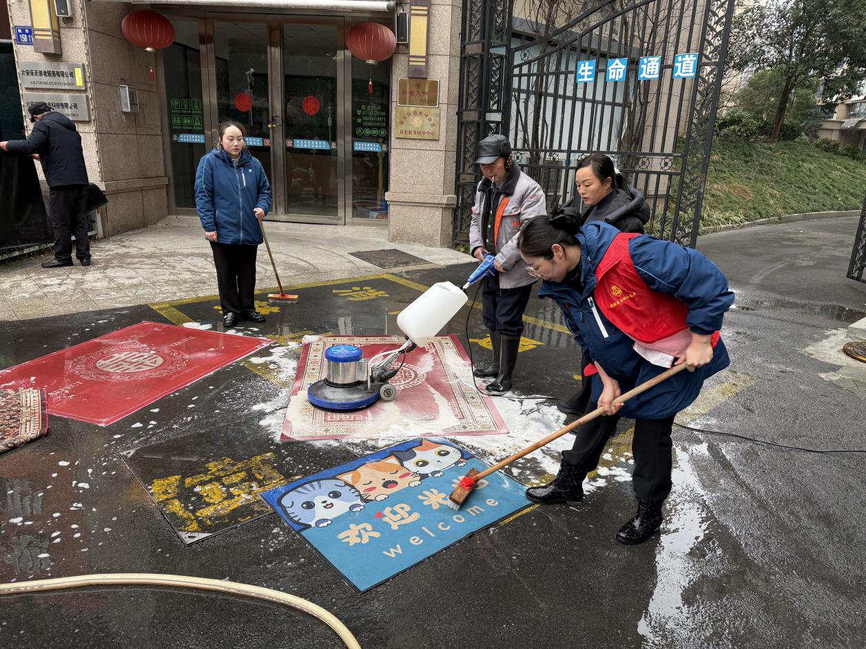 如果说翰墨书香满足了居民的精神文化需求,那么丰富多彩的便民服务则实实在在地解决了大家的日常难题。活动现场,几个服务点位前都排起了长队,洋溢着欢声笑语。在清洗地毯区,志愿者们手持高压水枪、刷子,认真冲洗居民送来的各式地毯。水流冲刷下,地毯很快恢复了原本鲜艳的色彩。