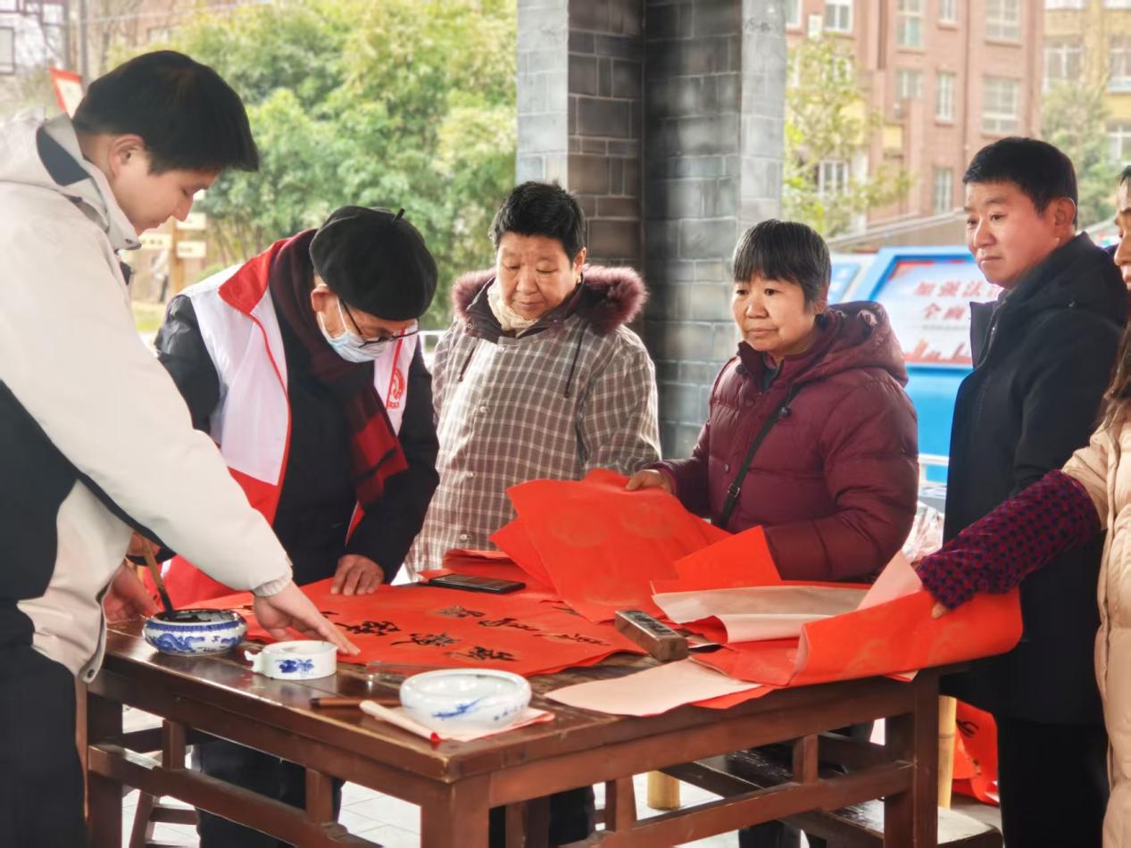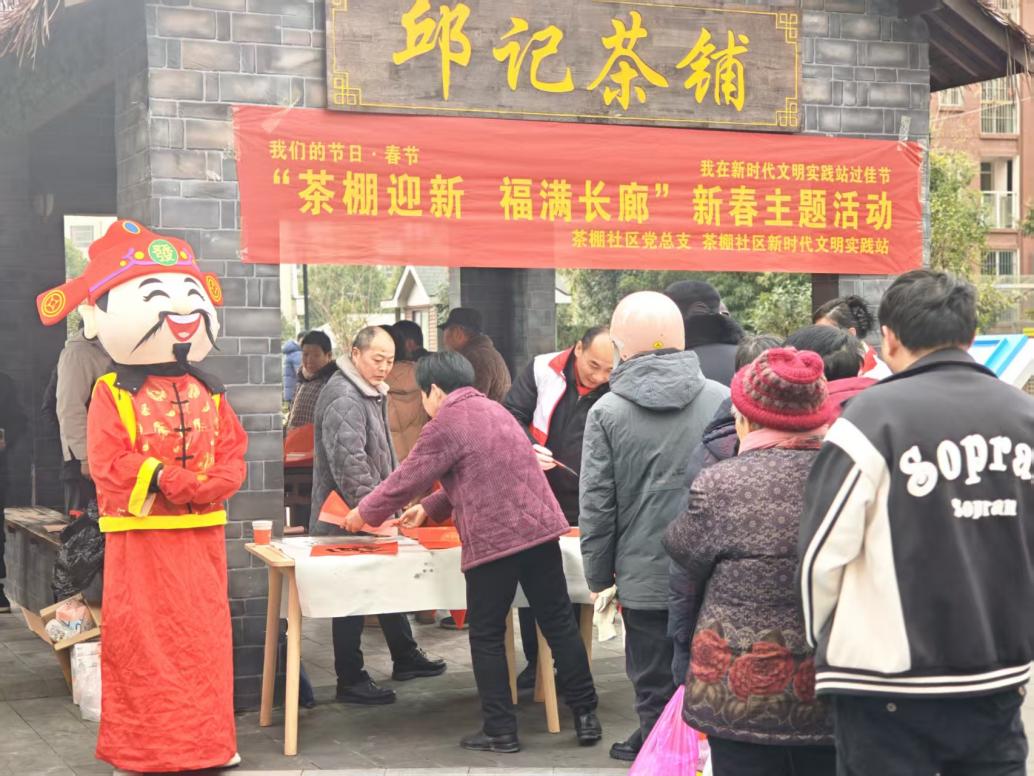 金蛇辞旧岁,骏马迎新春。在2026年农历新年即将到来之际,为弘扬中华优秀传统文化,丰富居民精神文化生活,传递社区温情与节日祝福,近日,六安金安区清水河街道茶棚社区在寿春华府小区“邱记茶铺”开展“茶棚迎新 福满长廊”新春主题志愿服务活动。社区志愿者、书法老师、居民群众欢聚一堂,以笔墨送福、趣味互动、民俗体验的形式,将暖心志愿服务送到居民家门口,营造出喜庆祥和、邻里和睦的浓厚节日氛围。