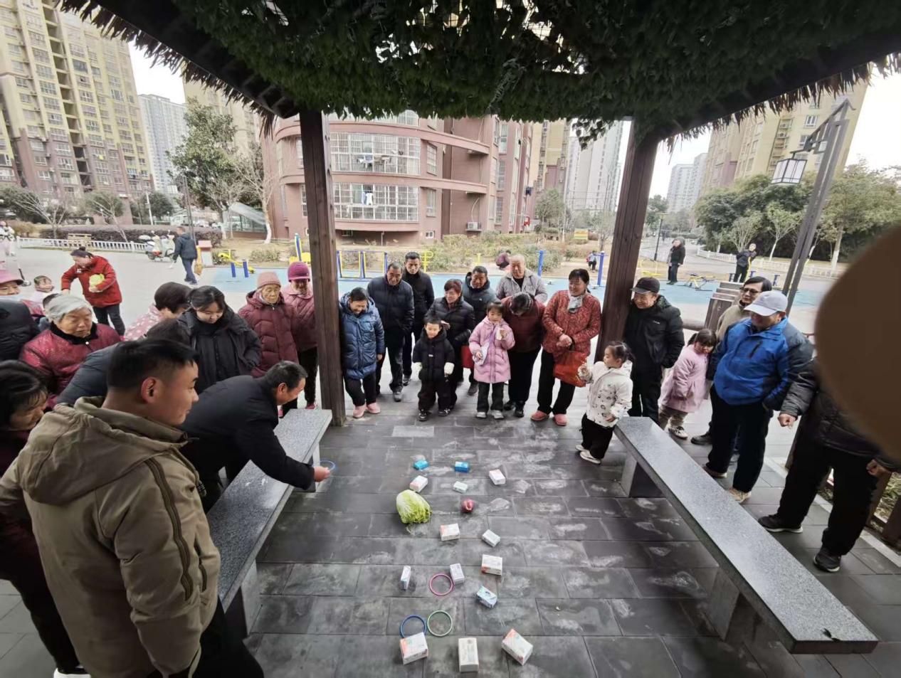 趣味套圈游戏区域排起长队,志愿者耐心讲解游戏规则、维持现场秩序,居民们踊跃参与,瞄准、投掷、套中,欢呼声、喝彩声此起彼伏。大家在轻松有趣的游戏中放松身心,收获礼品与欢乐,现场气氛欢快热烈,邻里情谊在欢声笑语中不断升温。