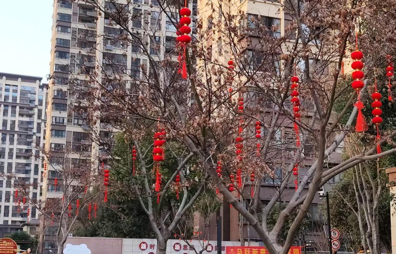 悬挂传统灯笼,营造喜庆氛围。小区主干道两侧的树枝上,物业工作人员精心悬挂了数百盏大红灯笼。灯笼采用传统的圆形设计,在阳光下熠熠生辉,让整个小区沉浸在浓浓的年味之中。