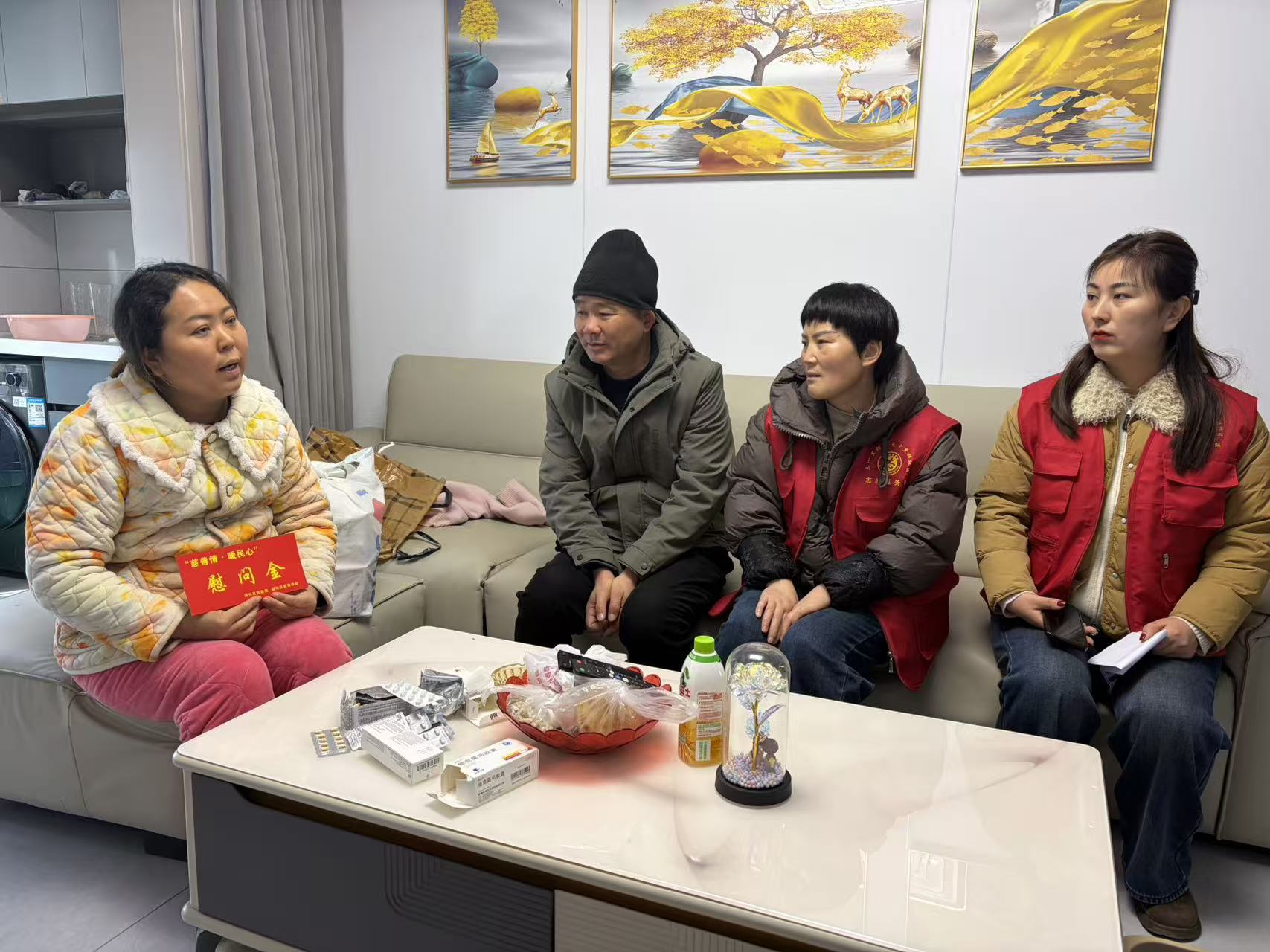 走访期间,工作人员与志愿者为每户困难家庭送上了慰问金,并致以诚挚的问候。他们与群众亲切交谈,详细询问其身体健康、家庭生活、经济来源等具体情况,认真倾听记录他们在日常生活中遇到的实际困难与迫切需求,耐心了解当前是否存在亟待解决的突出问题。工作人员鼓励受访家庭要保持积极乐观的心态,增强克服困难的信心,并叮嘱他们遇到问题可随时向社区反映,社区将尽力协调提供支持与帮助。