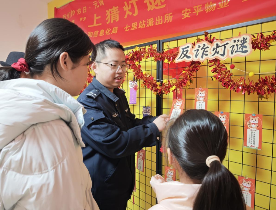 活动现场张灯结彩、热闹非凡,百余条灯谜吸引了众多居民踊跃参与。本次灯谜内容丰富多样,既有传统字谜、成语典故、元宵习俗等趣味谜题,也专门设置了反诈专题灯谜区,将电信诈骗、网络诈骗、冒充公检法、刷单返利等常见骗局巧妙融入谜面,通俗易懂、寓教于乐。居民们或驻足思索,或相互探讨,在猜谜、解谜的过程中轻松学习反诈知识,提升识骗、防骗、拒骗能力。猜中灯谜的居民还能领取小礼品,现场欢声笑语不断,节日氛围浓厚。
