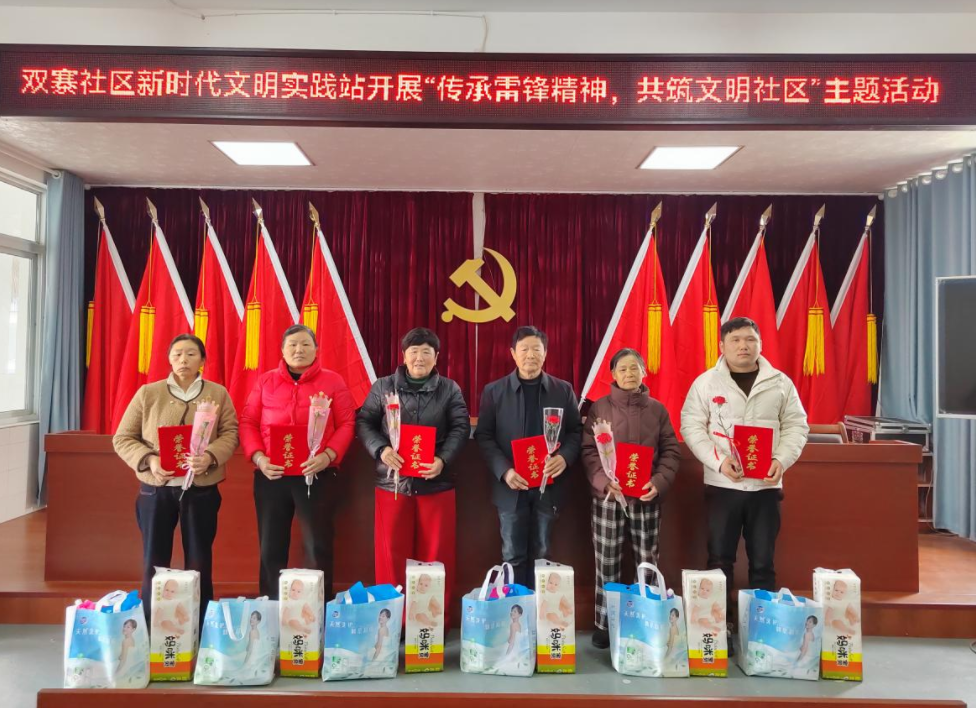 3月5日,阜阳颍州区三十里铺镇双寨社区新时代文明实践站组织开展“传承雷锋精神 共筑文明社区”主题活动,通过榜样表扬、精神宣讲、志愿服务倡议等多种形式,引导居民践行雷锋精神,推动新时代文明实践走深走实。