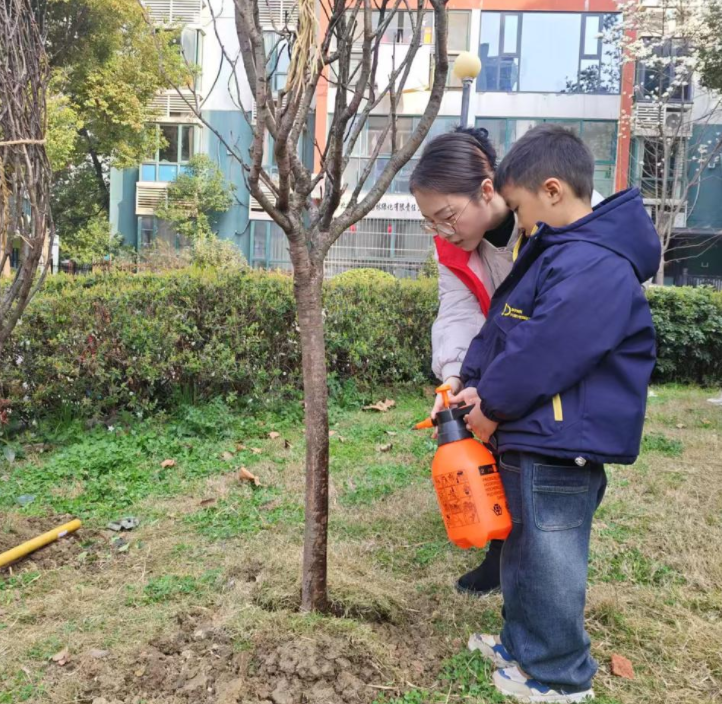 丹霞社区党委组织党员志愿者与居民在精心选定的小区绿化区域开展植树造绿活动。大家热情高涨、分工明确,有的挥锹挖坑、有的扶苗填土、有的浇水养护,每一道工序都细致认真、有条不紊。精心栽种每棵苗木,树苗迎风挺立,为小区添新绿。完成植树后,居民们悬挂上“勤俭为本”“绿水长流”等家风寄语牌,传达“树和孩子一起成长”的美好愿景。一株株新苗不仅为小区增添生机,更以“树语”传递生态理念,实现“植绿”与“育人”的双向奔赴。要扶正根基、及时修剪歪枝,才能茁壮成长,也让家长们意识到“护苗行动”的重要性。此次植树造绿活动,不仅改善小区面貌,更增强大家爱绿、护绿、植绿的环保意识,营造出“共建绿色家园、共享生态美景”的浓厚氛围。