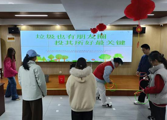 活动以游戏互动的形式将枯燥的垃圾分类知识融入趣味环节,在“垃圾分类大转盘”环节,居民们蒙着眼围成一圈转动印有不同垃圾种类的大转盘,指针停下后大家需迅速说出对应垃圾的分类属性,准确回答者即可获得小礼品奖励。看似简单的转盘却考验着大家对垃圾分类知识的掌握程度,参与者们一边转动转盘,一边热烈讨论,在欢声笑语中巩固了垃圾分类标准。紧接着“垃圾分类套圈”环节,现场摆放着标有各类垃圾名称的垃圾桶模型,居民们手持套圈瞄准目标奋力投掷。“我套住的是厨余垃圾,这个我最熟!”“这个塑料瓶是可回收物,一定要套准!”大家凭借对垃圾分类的理解精准投掷套圈,每一次成功套中都引来阵阵欢呼。通过这种游戏化的体验居民们不仅加深了对不同垃圾分类的记忆,也感受到了垃圾分类的乐趣。