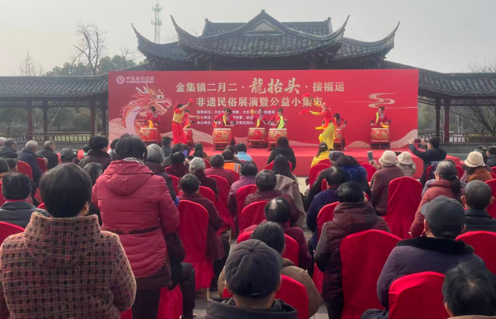 春风拂陌,祥龙启运。为深入传承中华优秀传统文化,擦亮非遗民俗文化名片,践行新时代文明实践志愿服务精神,同时助力本土特色产业提质增效,天长市金集镇精心策划举办“二月二 龙抬头 接福运”非遗民俗展演暨公益小集市主题活动。整场活动集民俗体验、便民服务、非遗展示、公益互动、助农展销于一体,让辖区群众在浓郁的传统氛围中感悟民俗底蕴、享受贴心服务、承接新春福运,活动现场人头攒动、暖意融融,处处洋溢着喜庆祥和、其乐融融的热闹景象。