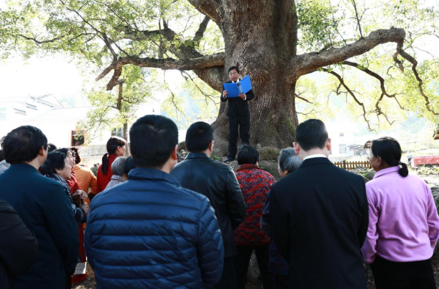“这棵千年‘佛掌香樟’古树是村里的宝贝,更是我们的‘绿色国宝’,不仅要护好它的‘身’,更要守好它的‘法’。”现场,群众围站古树下,认真聆听法律解读,积极咨询法律难题,现场氛围热烈而有序。不少群众表示,“在古树下学法,既种了绿色希望,也学了法治知识,这样的活动接地气、有实效。”