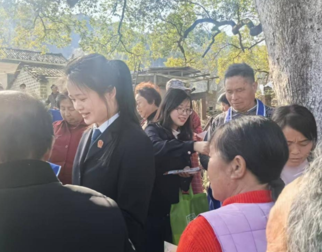 活动现场,各部门分工协作、精准发力,构建起“多元联动、靶向普法”的工作格局。历口司法所立足群众法律需求,重点解读《中华人民共和国森林法》《中华人民共和国土地管理法》等法律法规,结合茶园权属纠纷、古树保护等典型案例以案释法,现场解答群众关于林地承包、生态损害赔偿等民生法律问题,引导群众树立“护绿就是守法”的法治意识;历口法庭聚焦生态保护司法实践,讲解古树名木保护、破坏林木违法追责等法律要点,普及环境公益诉讼、生态修复补偿等司法保障机制,让群众直观感受司法守护生态的力度;历口林业站围绕古树名木保护条例、林木资源管理等政策进行详细解读,普及森林防火、野生动植物保护等知识,引导村民自觉守护绿色家园;通过悬挂横幅、发放宣传资料、现场答疑等形式,扩大普法覆盖面,推动法治理念融入乡村日常治理。