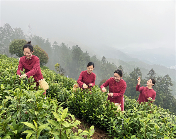 当日清晨,山间清风拂面,茶园青翠欲滴,云雾缭绕间,茶树新芽吐露,尽显生机。茶企代表、茶仙子身着特色服饰,穿梭在茶垄之间,开展喊山、敬山、走山、采摘等环节,清脆的喊山声回荡山间,传递着对丰收的期盼,尽显汤口茶文旅融合的独特魅力。