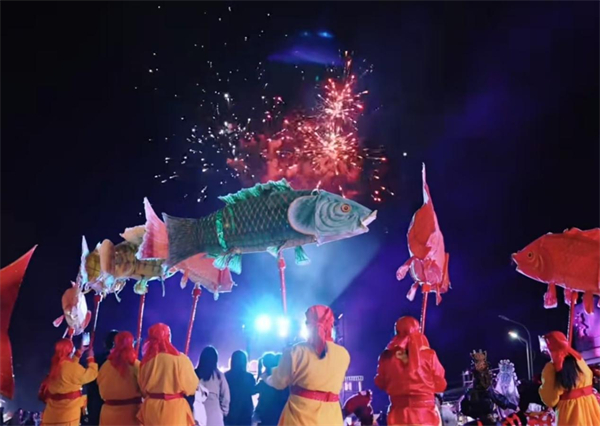 活动现场,鱼灯巡游与花神市集、篝火狂欢、烟花秀等环节联动,吸引大批游客驻足打卡、拍照留念。水东村以“非遗+文旅”融合为抓手,让传统民俗焕发新生,既展现了非遗传统的独特魅力,也为乡村文旅赋能、助力村集体增收注入新动能。