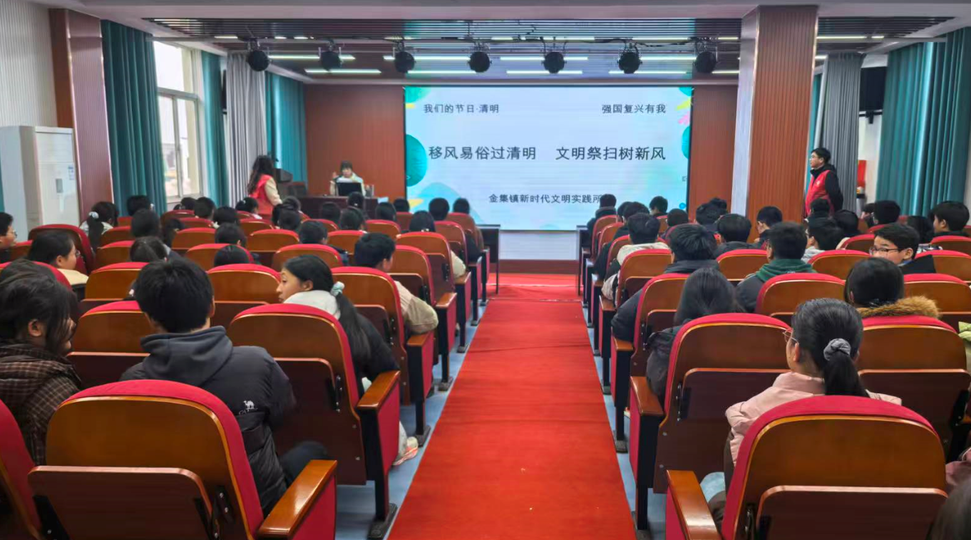 清明至,哀思寄,文明风,润童心。为传承和弘扬中华优秀传统文化,充分发挥传统节日的思想熏陶和文化教育功能,积极培育和践行社会主义核心价值观,扎实推进移风易俗,引导青少年树立文明祭扫理念,厚植家国情怀,近日,天长市金集镇新时代文明实践所组织志愿者走进金集中学,开展“我们的节日 清明——移风易俗过清明 文明祭扫树先锋”主题课堂活动,用生动易懂的形式,让清明文化入脑入心,让文明新风浸润校园。