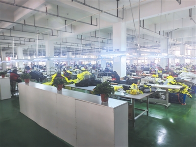 揭牌仪式后,到来的嘉宾朋友们在员工们的引导下参观了鹏飞服饰的新厂区。这个现代化厂区,规划科学,布局合理,分为设计研发区、制造区、仓储物流区和行政办公区四大功能板块。