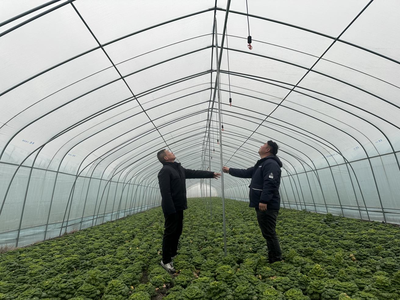 农技人员深入田间地头,逐棚逐户实地查看设施大棚的结构安全、保温性能及积雪清理情况。针对部分老旧大棚、结构薄弱点,现场提出加固修复建议,指导农户及时清除积雪、修补破损膜材,防止因积雪压塌或漏风漏雨导致损失。同时,技术人员走进棚内,仔细察看黄瓜、叶菜等越冬蔬菜的长势,结合低温高湿环境特点,围绕温度精准调控、合理补光、科学通风、水分管理等关键环节,开展“点对点”“手把手”技术指导。农技人员还现场示范覆盖保温、临时加温、叶面补肥等防寒抗冻应急措施,帮助农户提升应对寒潮的实操能力。