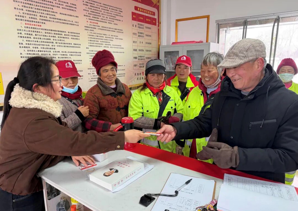 完成道路清雪除冰。村党支部给参与扫雪行动的志愿者发放“无事”找书记积分卡,并鼓励他们积极参与村级公共事务和乡村治理,共建文明、和谐和平安的和美乡村。