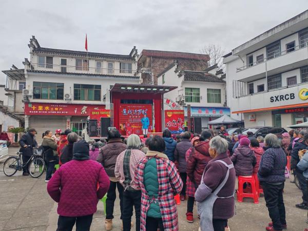 锣鼓喧天聚乡邻,戏韵悠长润民心。为弘扬中华优秀传统戏曲文化,丰富广大群众精神文化生活,连日来,歙县许村镇“送戏进万村”活动在各村陆续拉开帷幕。专业剧团携《三女拜寿》《状元拜母》《梁赵姻缘》等经典黄梅戏剧目,将一场场高品质的文化盛宴送到群众“家门口”。