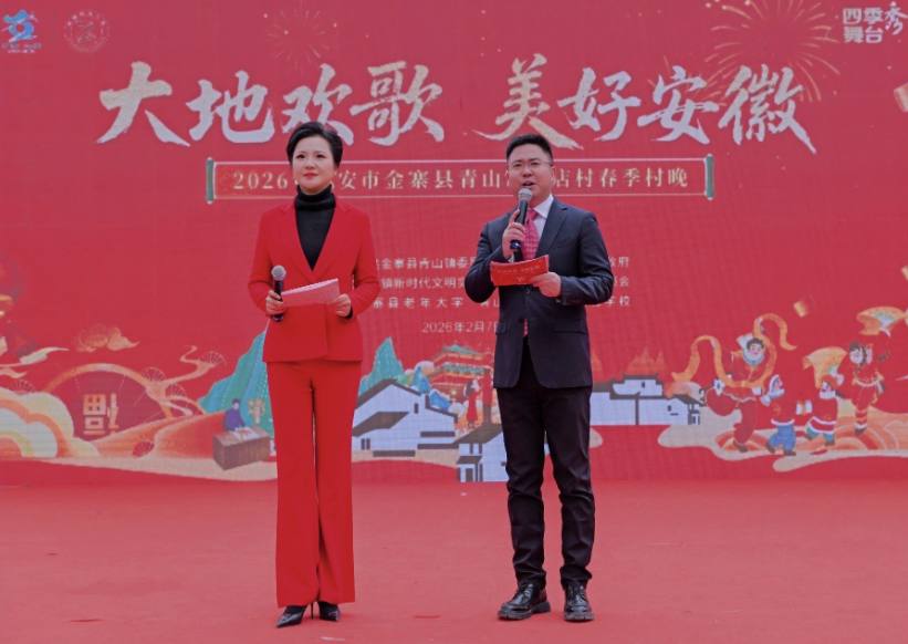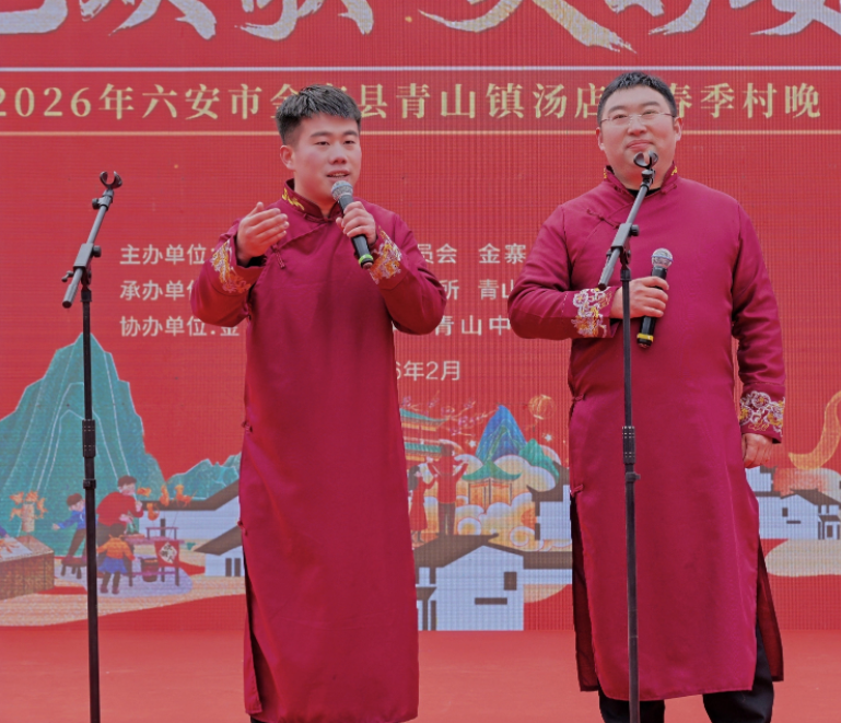 腊月年味浓,青山聚欢歌。2月7日下午,金寨县青山镇汤店村晚在全镇群众的热切期盼中盛大启幕。这场以“大地春歌 美好安徽”为主题的汤店村晚,不仅汇聚了17个涵盖歌曲、相声、黄梅戏、舞蹈、快板等多种形式的精品节目,更通过热闹的年货大集、惊喜抽奖环节,让现场观众在欢声笑语中品味地道年味儿,感受家乡发展的蓬勃生机。