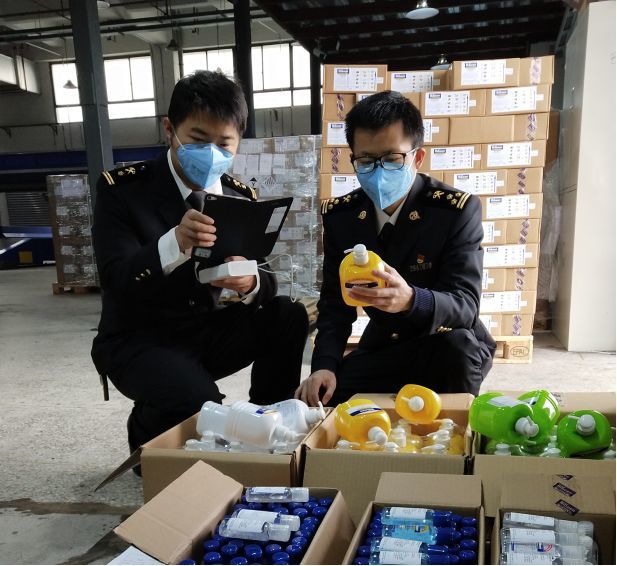 2月15日,杭州海关所属义乌海关工作人员对义乌某外贸企业进口的抑菌洗手液进行目的地检验,该批货物共9种类型,共计21.1万瓶,属于进口重点急需疫情防控物资。海关加班保障通关,按布控要求核对保质期、中文标签、外观包装等内容,高效完成检验工作,确认无异常情况后后第一时间给予放行。