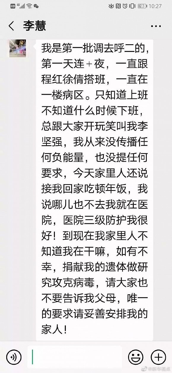 她给护理部发了一段话