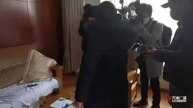 单玉厚的家属和同事来到宿舍整理遗物。(来源:天津广播)
