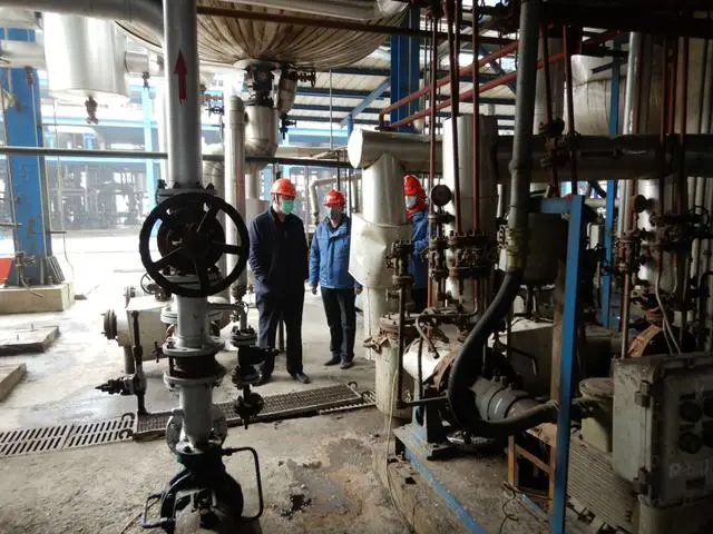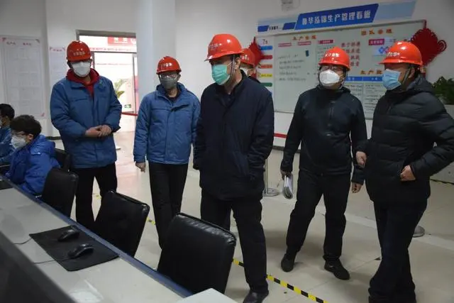 上图为2020年2月21日单玉厚对申请复工复产的天津鲁华泓锦新材料科技有限公司进行现场检查和安全服务指导(左一佩戴绿色口罩者为单玉厚)。