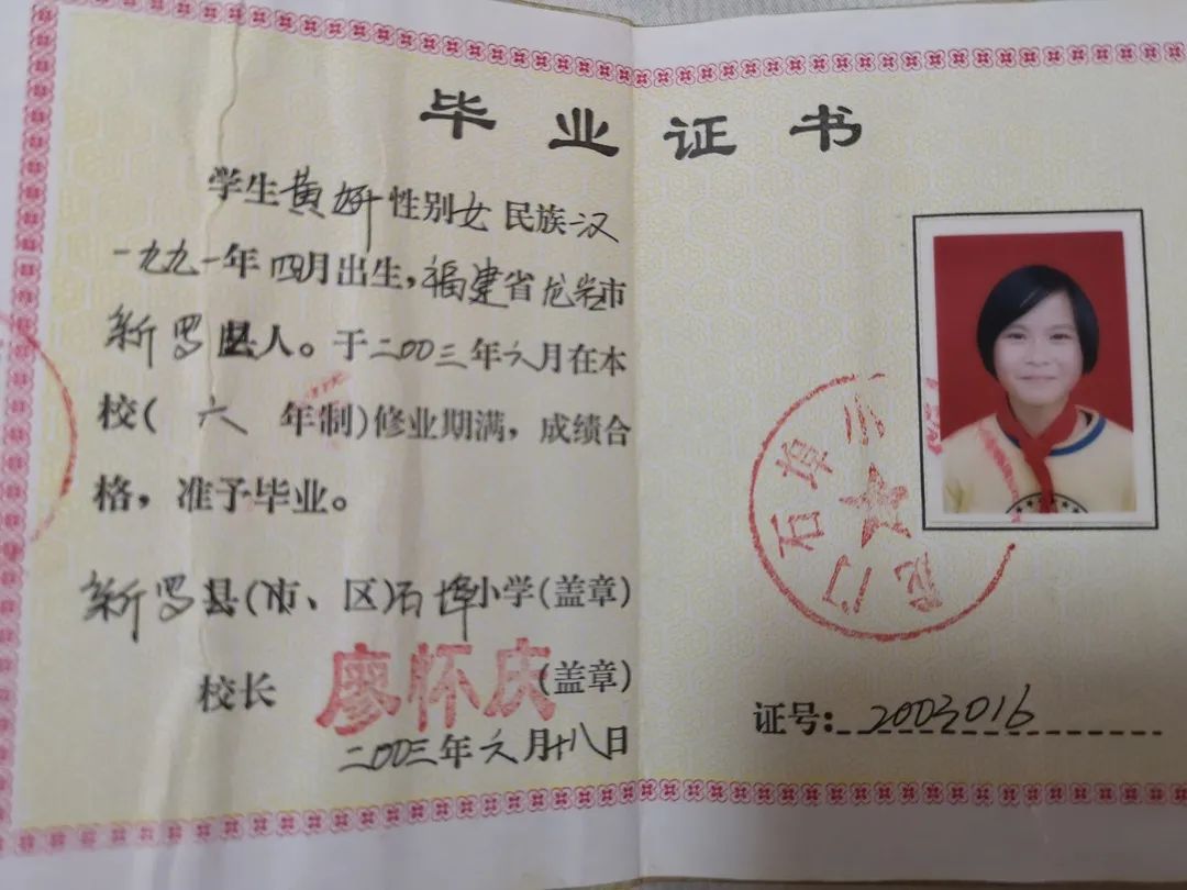 2003年“非典”结束后,黄妍如期小学毕业。