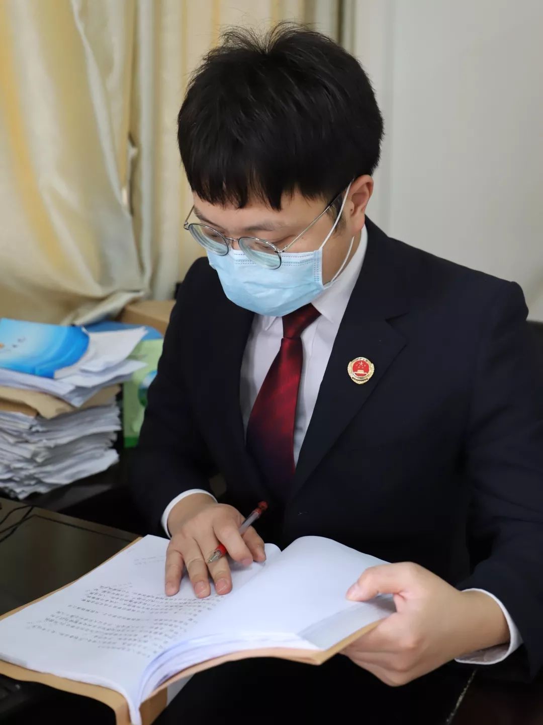 2020年,弋坤在审阅涉疫刑事案件卷宗。