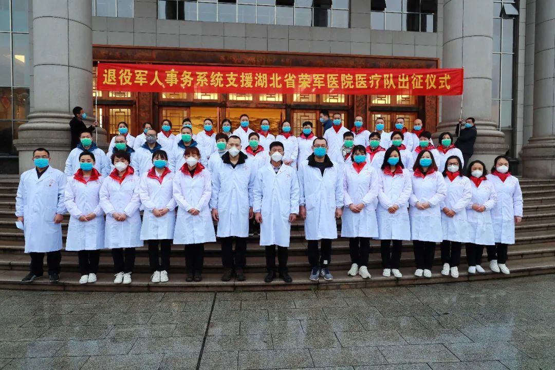 △2月11日,退役军人事务部组建首支医疗队驰援湖北省荣军医院。这是出征仪式现场。新华社发(曹舒昊 摄)