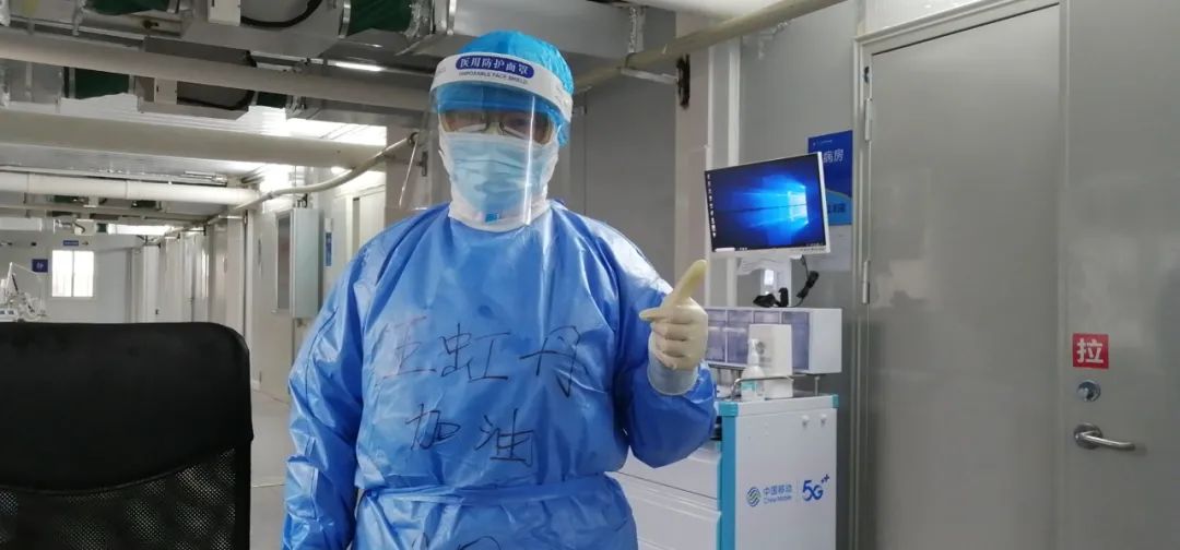 而一旁的王虹丹一直弯腰弓背举着手机,手僵了,护目镜花了,防护服微微浸湿了,可王虹丹的心里却是暖暖的。