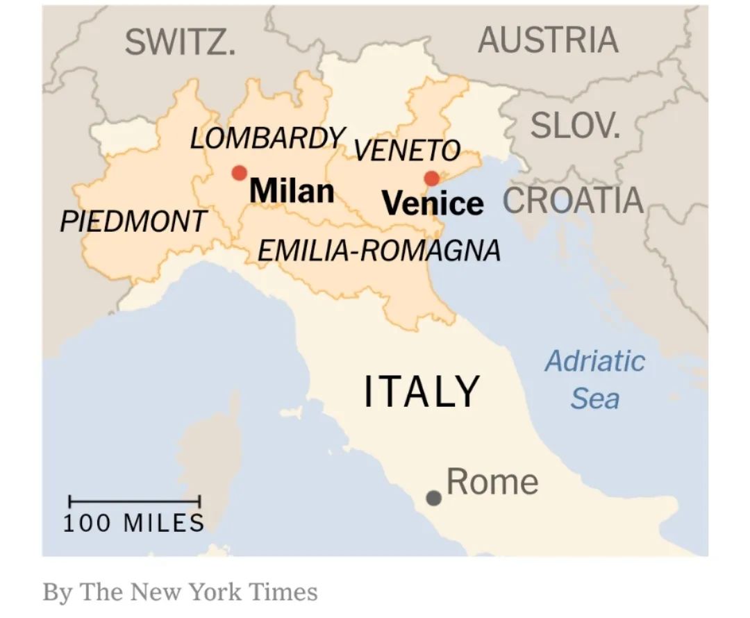 意大利先是封锁了(Lockdown)北部地区