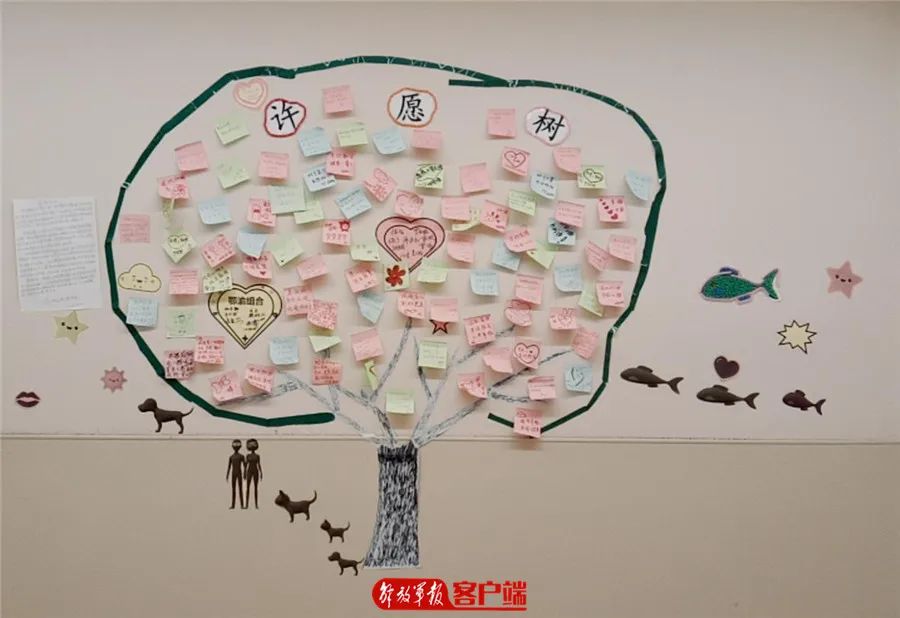患者把心愿贴到“许愿树”上。