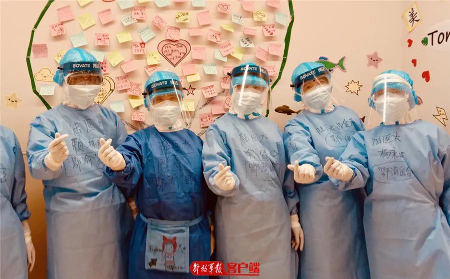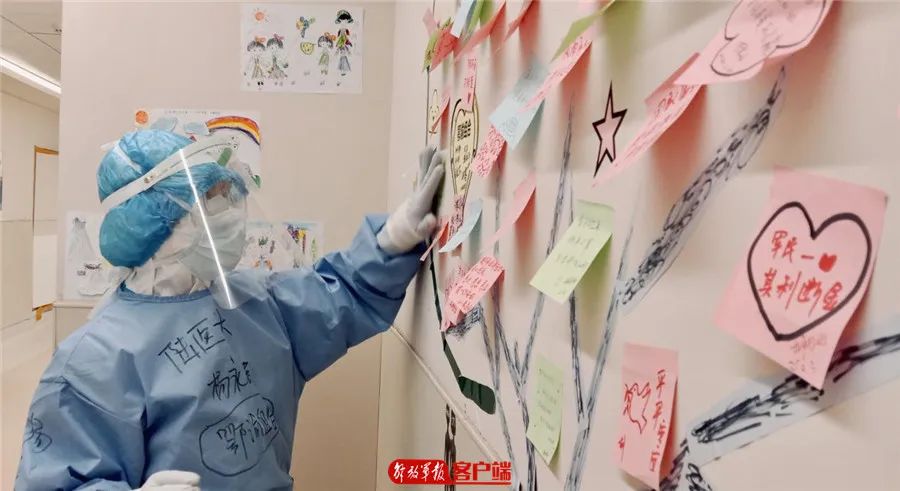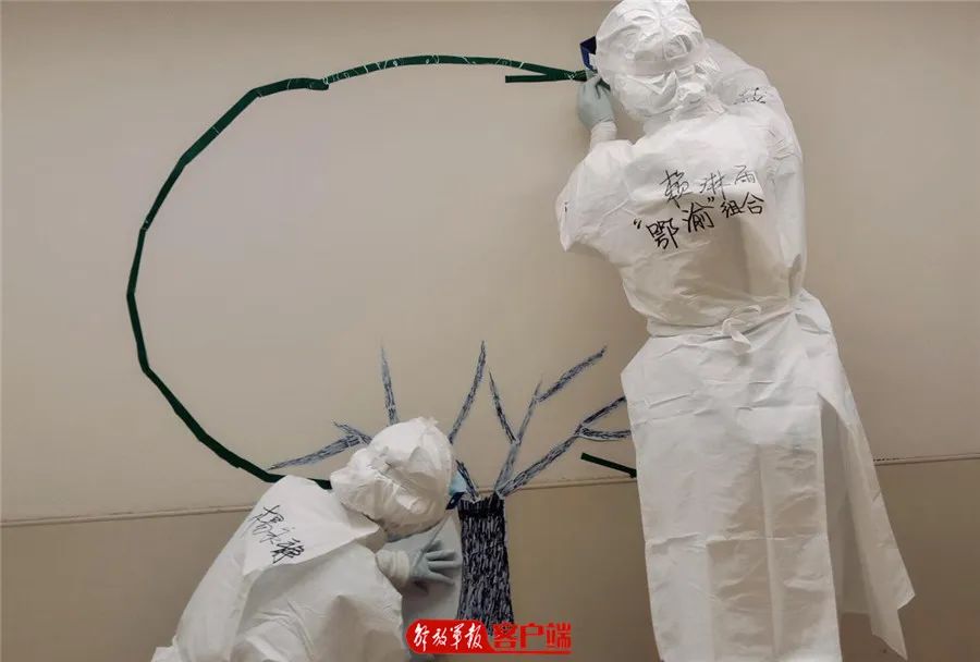 护士在隔离病区的墙上精心布置“许愿树”。