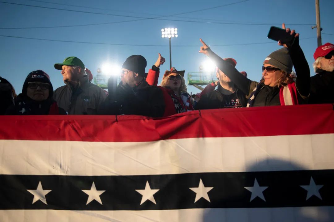 △ 当地时间2020年10月27日,在美国威斯康星州举行的一场特朗普竞选集会上,部分参与者没有戴口罩。(图片来源:视觉中国)