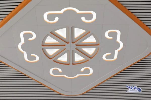 站房两侧的玻璃幕墙以顺畅的流线型分隔向中部收拢,犹如两条游龙聚首,形成恢弘大气的整体格局。