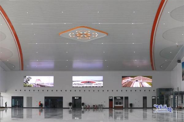 站房正立面采用开放式铝板幕墙设计,站台雨棚则采用了弧形造型,线条更加生动灵活。
