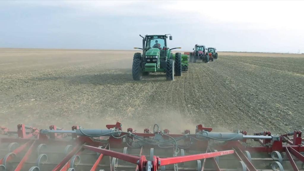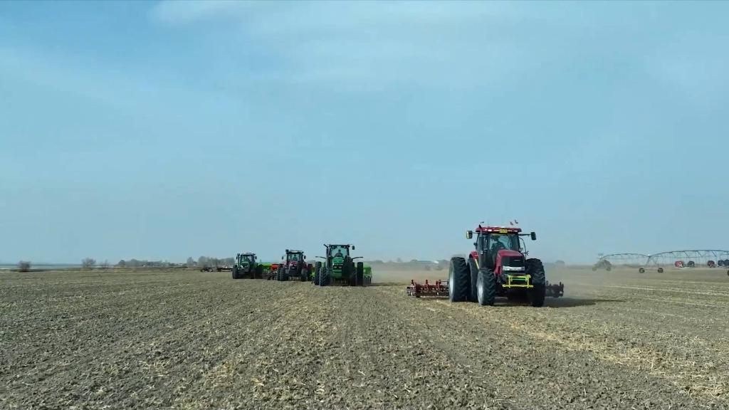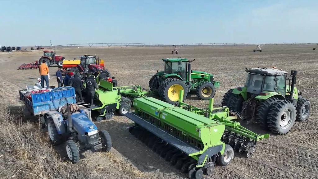 东北辽阔的黑土地上,一幅幅火热的春耕画卷徐徐展开,一台台大型农业机械在田里穿梭。