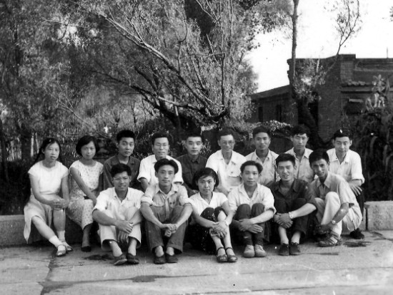 “东方红一号”卫星总体组合影(后排右6何正华、前排右1胡其正)。 受访者供图